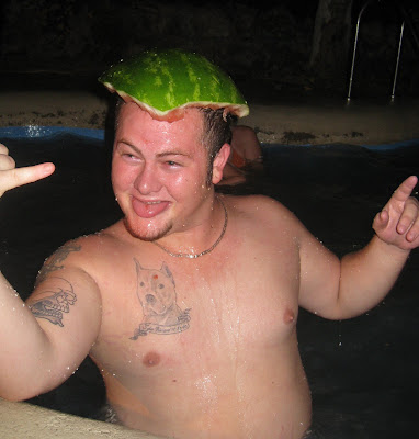 Last night i went to Julie's bachelorette party, it was fun. I wasn't going to go at first because i don't really like to go out much, i would rather stay home with jakey and ty. but i found out that there wasn't a big turn out, and i felt bad. so i went. : ) I think everyone but Julie and her maid of honor paid over $100 for this one night, which isn't really the way it's suppose to work...but any who, i also wasn't going to spend the night, then i decided that the expensive ass hotel was closer to my work then my house was so i figured i could sleep in an extra 10 min or so. then i was 1/2 an hour late to work, it rocked. So since i wasn't prepared to sleep overnight i had to call Jake to ask him if he could bring me clothes and stuff, he did because he is awesome. And he brought me one of his shirts and he sprayed his Cologne on it so i could smell his yumminess while i slept, but it made me miss him even more...I hate sleeping without Jake, i don't recall ever sleeping the whole night away from each other in the last 2 years, if one of us goes out we always come back. I don't like sleeping without cuddling with Jake. And just to prove that i have the best fiance in the world, he gives me a foot massage pretty much every night before bed, and i missed that too.