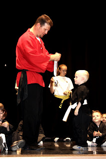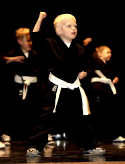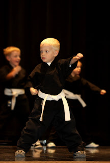 my baby is growing up. he had his first performance of any type yesterday. He does karate at his school and he had a recital to show what they've learned. They dressed them up in little karate outfits, it was the cutest thing ever! Since ty is so little they put him in the front row so we could see him perfectly the whole time. he was so cute, he looked so proud up there showing everyone what he could do. When we decided to get my fancy shmancy camera i told jake that i wouldnt need a certain type of lens until ty was really in sports or concerts but i really needed one yesterday, my pics sucked!!!